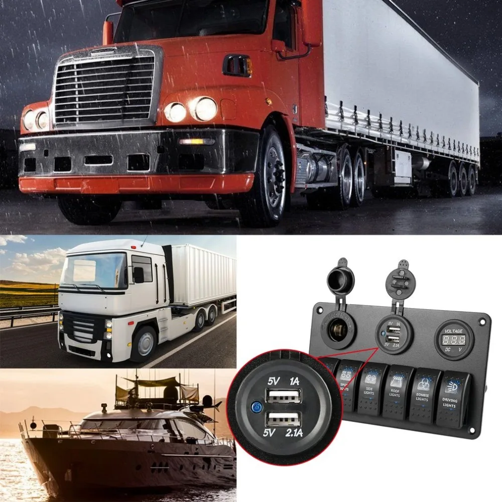 New 6 Gang Car Marine Boat Circuit Blue LED On/Off Rocker Switch Panel IP68 Waterproof 6 Rocker Swi