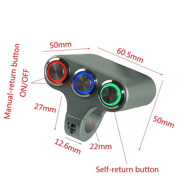 Silver Motorcycle Switch 7/8" 22mm Handlebar Mount Switches Headlight Hazard Brake Fog Light ON-OFF